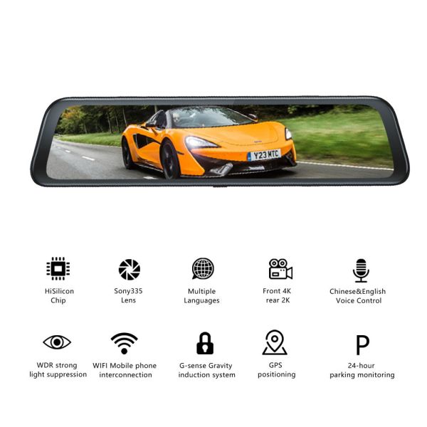 Rearview Mirror Motion Sensor 4K GPS Dash Cam For Car 12 Inch SONY IMX335 3840x2160P Images |